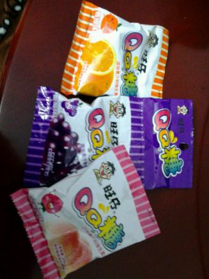 在超市或者小卖部买一些QQ糖,这次我买了四种味道的QQ糖