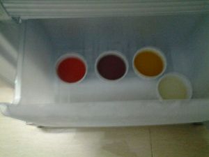 调好,装入瓶中,放入冰箱,冷冻层,5分钟,凝固,接着用这种方法做其他颜色!