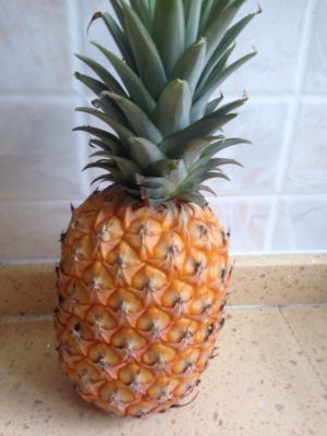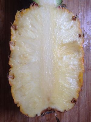 蒸米饭时我们找一个菠萝 在菠萝上部切开
