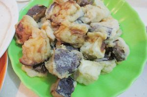 腌出水后的茄子,挤掉水,拌入淀粉费用
