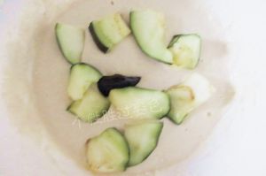 茄子彻底洗净,切成滚刀状。加入适当盐,腌制片刻。然后挤掉盐水,茄子的营养都在皮里,所以不要削皮