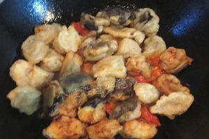 加入炸好的茄子进行翻炒
