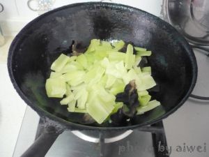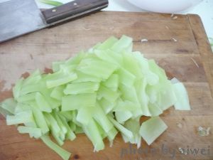 莴笋炒熟放炒好的鸡蛋加味精出锅。