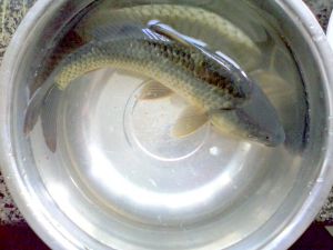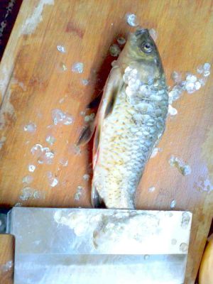 鱼处理干净,用葱姜蒜盐料酒,少量酱油将鱼研制半个小时