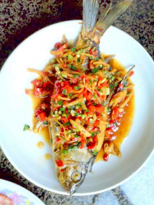 由于煎的时候。。没有拍照。。。1、先放入油锅煎好。。注意不要总得翻动。。不然鱼肉容易碎 2、然后放入姜、生抽、辣椒还可以放入少量水 3、最后放入少量盐。。由于生抽已经有盐味了 5、再撒上葱花 6装盘