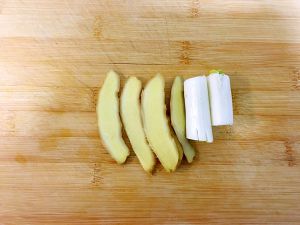 姜去皮切片,玉米、胡萝卜、排骨分别切块