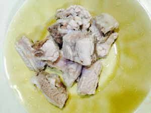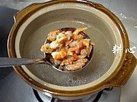 花胶泡好后,沥干水分。排骨冷水下锅,煮出血水,沥干。