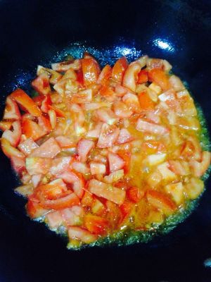 炒西红柿汁的时候一定要同时放点盐,这样西红柿会很快出汁。