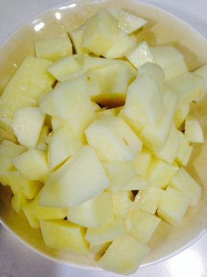 排骨炖差不多之后放入土豆,7颗大蒜,葱,大酱酱油少许盐辣椒粉炖