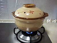 将脊骨放入砂锅中加入姜片,没过排骨的水