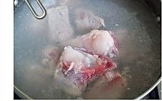 浸泡过的排骨清洗两三遍血水,沸水放姜片两三片,料酒两匙,葱段三段,排骨下锅,两分钟捞出,温水多洗两遍,洗掉嘈气血水,这样煮出来的汤很鲜很干净。
