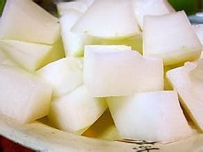 在超市买回的冬瓜都是环形的小块,小伙伴们回家后洗净,纵向切成块,用刀将皮切掉,在切成稍大的块。。。