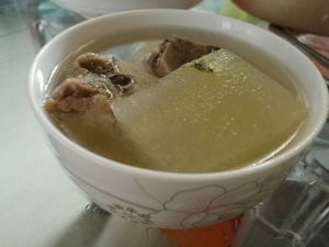 一次性加足水分后,加入冬瓜排骨一起煮沸。三十分钟后加入鸡精盐。