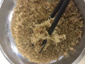 慢工出细活,小火翻炒半小时左右肉松就做好了