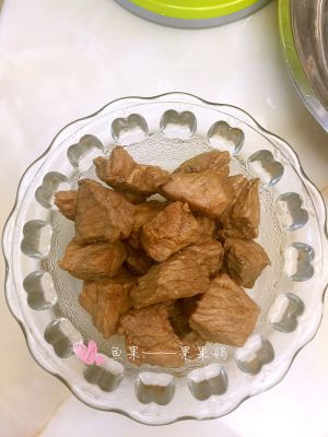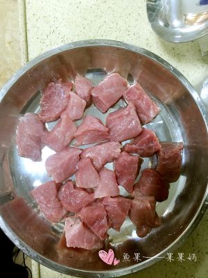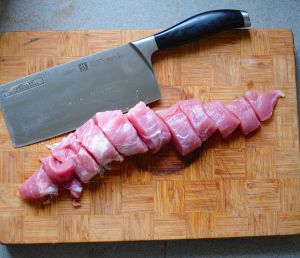 1.将瘦肉去掉肥肉和筋膜部分切成5*5cm大小待用