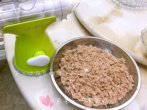 一个程序结束后,若肉松上色和干湿度还不太满意,可以继续开启第2个果酱程序,直到肉松比较干爽蓬松即可出炉(我第2个程度剩余25分钟,肉松制作完成。各款面包机火力不同,时间请斟酌调整)。