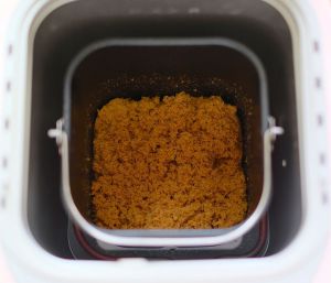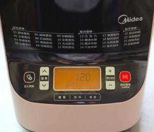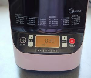 选择面包机17档“果酱功能”,开始制作肉松。(我的面包机果酱功能程序为1小时20分钟。)