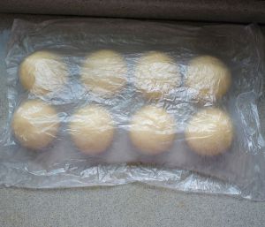 将面团滚圆,盖上保鲜膜,松驰15分钟。