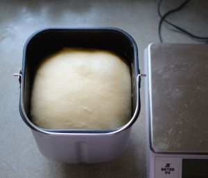 撰写制作取一块检视,如面团可拉出薄而不囫破的膜后,取出面包机内筒,放在温暖处面团发酵至2倍大,结束基础发酵。