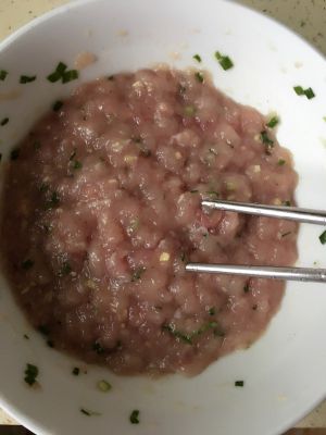 怕麻烦,卖肉的地方帮绞好肉糜了。荠菜鸡毛菜剁碎了,把肉混一起再剁剁