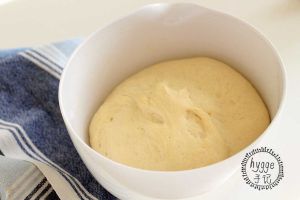 把面团放在盆里,盖一块布在盆上,在室内温暖的地方发酵1个小时左右,待面团发至2倍大即可。