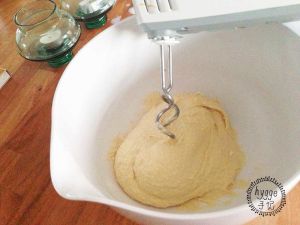 加入面粉,一点点搅拌,和成面团。如果你有和面机可以用和面机,没有的话用手慢慢揉,面要多和一会,让面粉和湿料充分融合。(我用的是手持和面器)