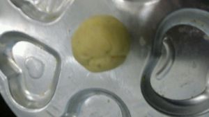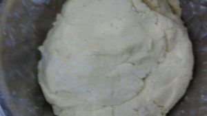 揉成面团软硬程度大概比饺子面硬点。其实应该是黄色的我拍照的问题拍成白色了!