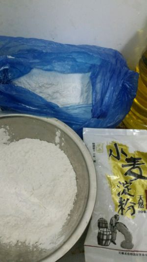 小麦淀粉要拿开水烫,边加水边搅烫成水晶状。大概500g南瓜放200g小麦淀粉就行。