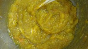 南瓜蒸好后用勺子搅烂,加适量白糖,加适量糯米粉