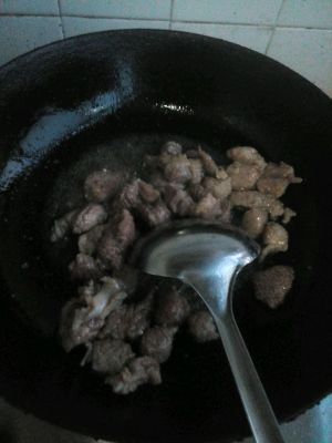 牛肉横切成块,加入料酒,干淀粉,少许小苏打抓匀,待用。加入小苏打能够使牛肉变嫩,这也是一点通里提到过的。