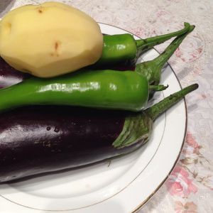 土豆,茄子洗净去皮,葱姜蒜切碎备用。