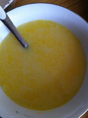 将炼乳、牛奶、白糖搅拌均匀,加热至白糖完全融化,将炼乳、牛奶、白糖搅拌均匀,加热至白糖完全融化,筛入低筋面粉,将面粉搅拌均匀,过筛制成蛋挞水