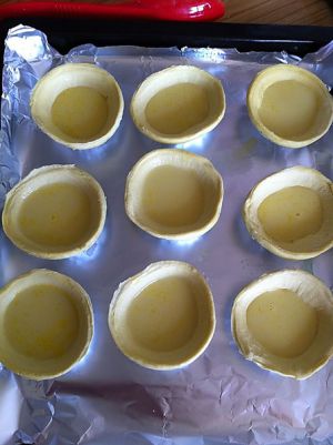 装入烤盘,放入约热好的烤箱中层。210度,25分钟左右,烤至蛋挞表面出现焦点即可