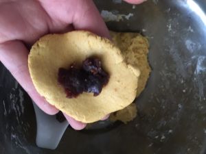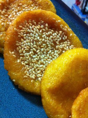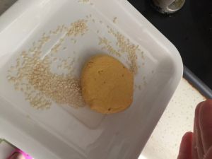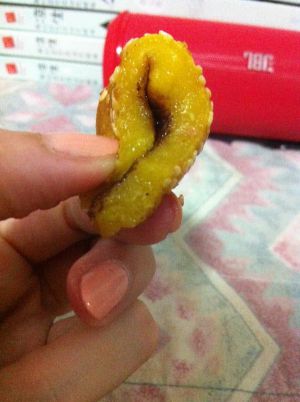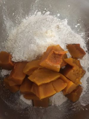 南瓜切成小块上锅蒸熟,趁热放上糖,冷却,加上糯米粉,慢慢加,能揉成团,就行了,不能太干