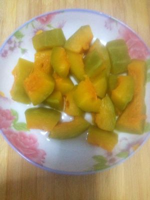 新鲜南瓜去皮,切块,薄点易熟,勿煮,宜蒸