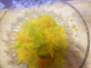 将南瓜隔水蒸熟,或者直接拿料理机直接压成糊状