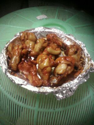 早晨把腌好的鸡翅拿出来! 把烤箱预热五分钟 把鸡翅放在考架上,180度考20分钟左右就可以啦! (考鸡翅的时候,把一勺蜂蜜用温水化开,考十五分钟左右的时候,把鸡翅拿出来,反正抹上蜂蜜,撒上芝麻!再考五分钟就可以啦)