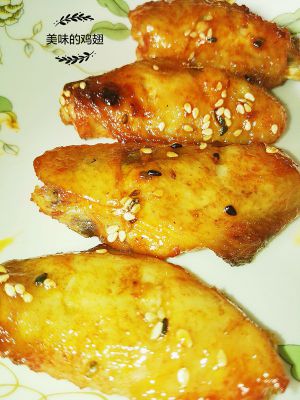 鸡翅出炉后,表面撒上几粒白芝麻就可以食用了