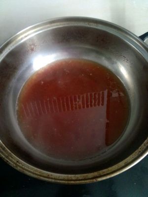 待锅出茶香后,依次加入蜂蜜、白砂糖和番茄酱。