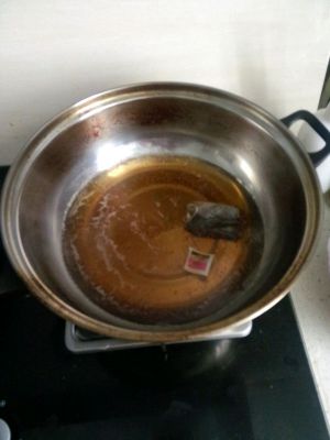 这里面的是水不是油,开小火用水化开冰糖,你也可以事先用热水把冰糖化开