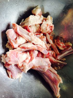 处理羊排,把羊排处理成一小段一小段的,也可以直接一整条肋骨,但是吃的时候不好下口