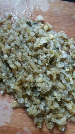 猪肉最好腌一下,可以放一点盐,酱油和糖下去,把面粉也放一点吧,面粉可以吸水
