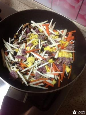 最后放入孜然 鸡精 翻炒几下出锅 成品