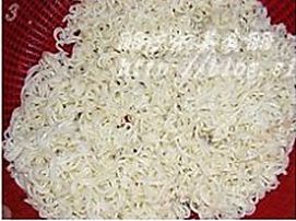 锅里水开后,放进碗面,煮至8成熟(大概是面条自然散开后再煮2分钟), 捞起面条过冷水,沥干水分;