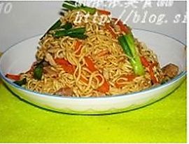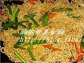 重新热油锅,放进沥干水分的面条翻炒1分钟;
