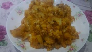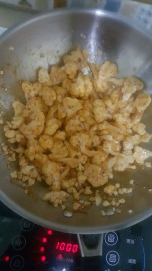 炒锅放油,五成热时候放入葱蒜放入菜花番茄酱翻炒至所有菜花都裹上番茄酱出锅