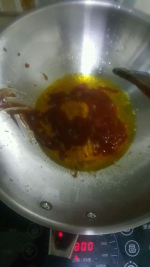 番茄酱与菜混合好了以后,耶!这时候把准备好的开水倒进去。