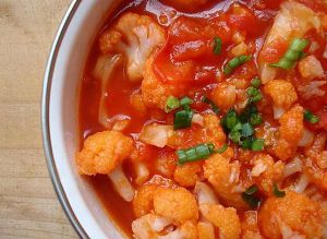 40克红果家茄汁面兑60克水搅拌均匀,倒入预热好的锅里,加入洗好菜花,煮沸。