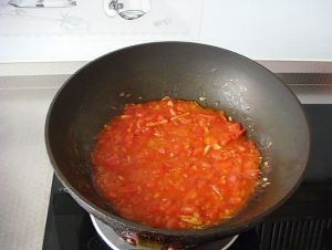 锅烧热,葱姜暴香,先炒番茄,建议暴香时将盐加入,免喷溅,翻炒几下,炒出水,有些软即可,番茄中番茄红素需要与油脂充分接触才可被人体充分吸收