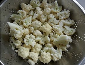 菜花洗净切小块,最好拿水泡一会,水里放些盐,便于成熟